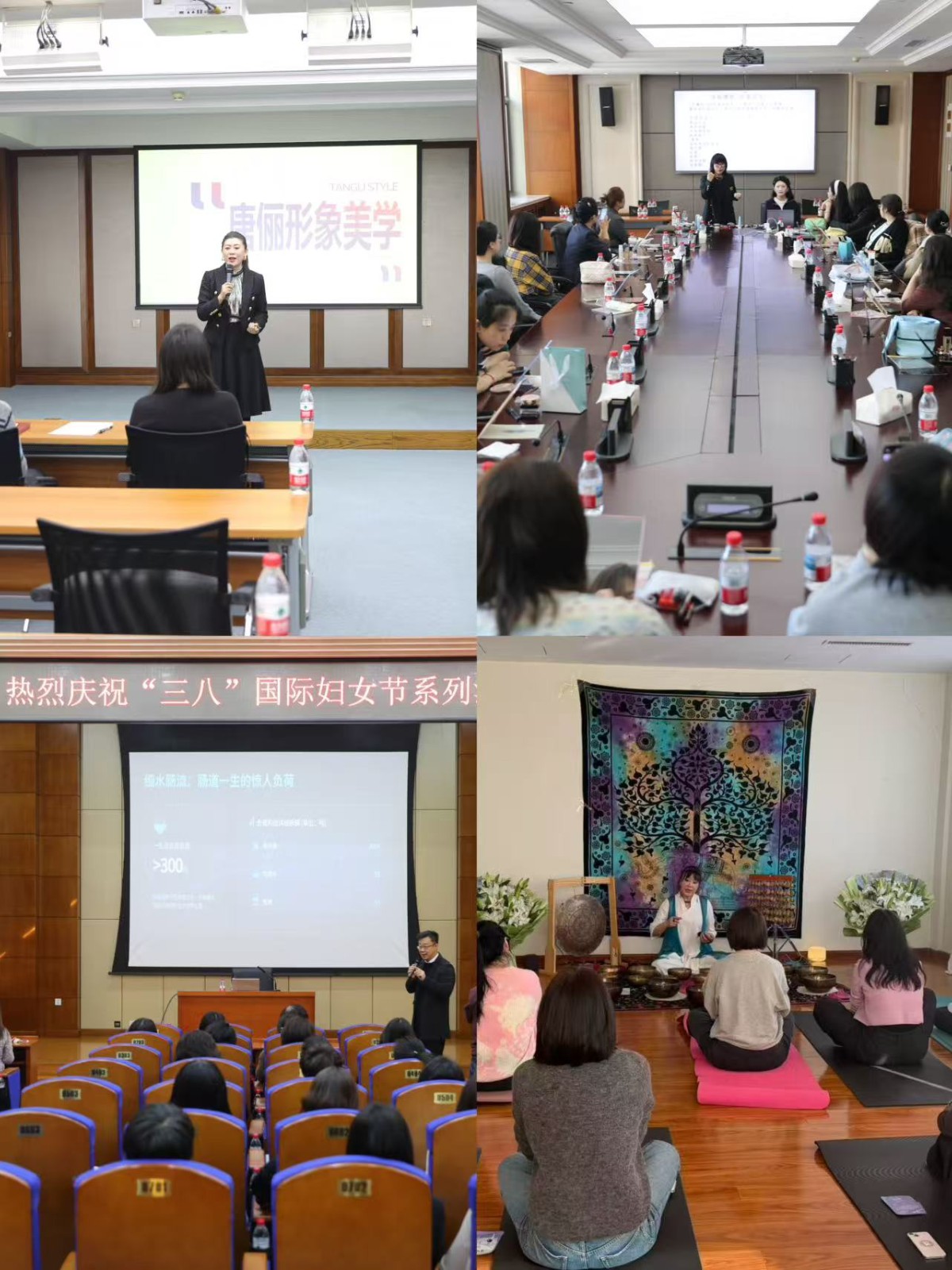 服装礼仪搭配分会场,结合国企场景讲解着装礼仪、搭配技巧与穿搭要点,以案例演示和互动指导,帮助职工塑造良好的职业形象;彩妆分会场,现场实操教学,引导职工树立形象管理的生活理念;养生分会场,聚焦职工亚健康问题,讲解肠道健康、颈肩不适等调理方法,并给出饮食作息建议;瑜伽冥想分会场,带领职工体验沉浸式冥想,帮助舒缓压力、悦纳自我,提升心理韧性,在温暖职工身心的同时传递正确生活方式和职场健康理念,助力女性自信成长。